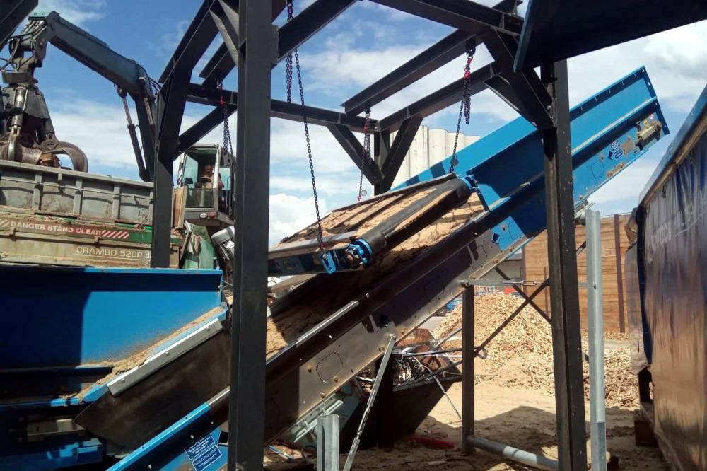 Stretli sme sa aj s prevádzkou, kde sa z drevnej štiepky oddeľovali NEMAGNETICKÉ kovy. Drevná štiepka obsahovala farebné kovy (meď, hliník, nehrdzavejúca oceľ) a cieľom bolo oddeliť tieto kovy od drevnej štiepky, aby sa obe frakcie mohli použiť neskôr. Na tento účel sme použili separátor nemagnetických kovov (Eddy current separátor), ktorý obe frakcie spoľahlivo oddelil.